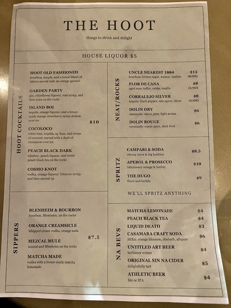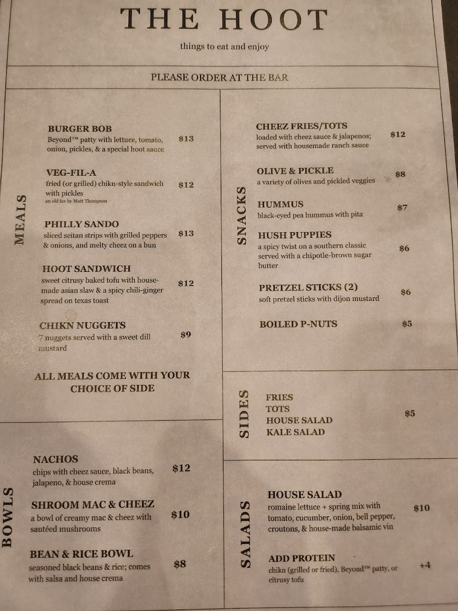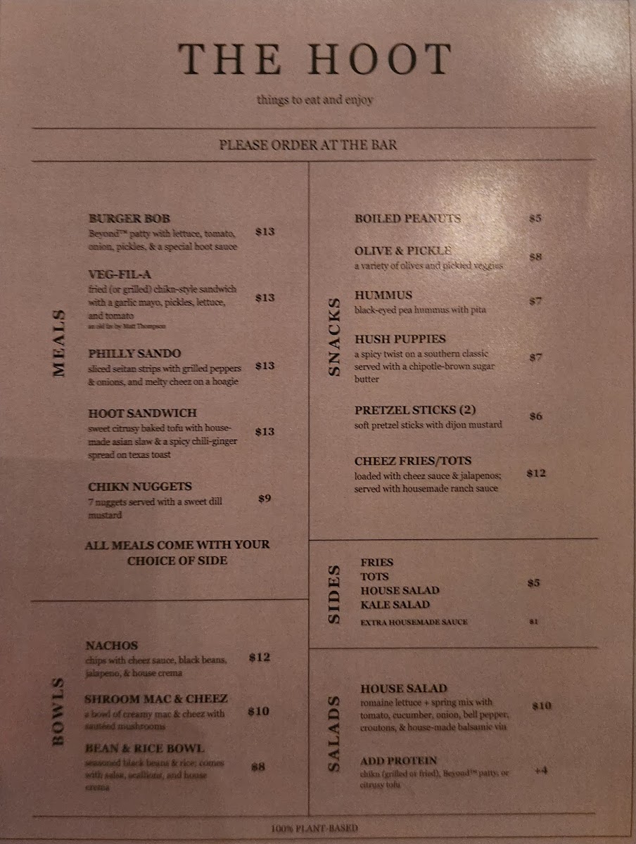 The Hoot Menu